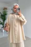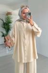 Ka Hijab Parlak Dokulu Bol Kesim İkili Takım - Bej