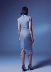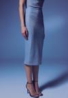 Yüksek bel, arka fermuarlı ve yırtmaçlı, iç astarlı, esnek, parlak kalem etek.