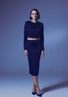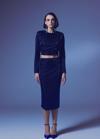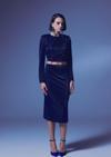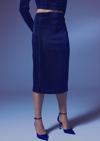 Yüksek bel, arka fermuarlı ve yırtmaçlı, iç astarlı, esnek, parlak kalem etek.