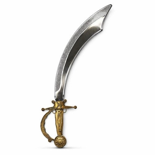 Tarihi ve ihtişamlı tasarımıyla dikkat çeken eskitme altın kabzalı kavisli kılıç, kostüm partileri, gösteriler ve konsept çekimler için mükemmel bir tamamlayıcı aksesuardır. Özel eskitme altın görünümlü kabzası sayesinde otantik ve güçlü bir duruş sunar.