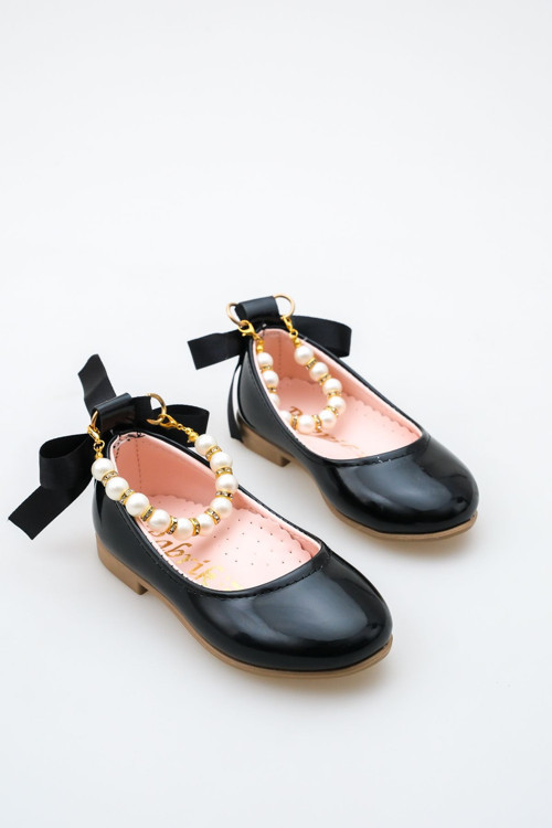 Parlak Siyah Bileği İncili Kız Çocuk Babet - Parlak siyah rengiyle dikkat çeken bu babet, kız çocuklarının şıklığını tamamlar.