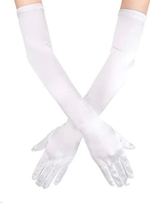 Çocuk Beyaz Renk Dirseğe Kadar Uzun Kumaş Eldiven 40 cm