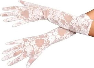 Beyaz Renk Kısa Dantelli Eldiven (5250)