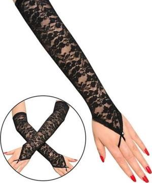 Kısa Boy Likralı Güpürlü Yetişkin Tül Eldiven Siyah Renk