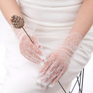 Kısa Boy Güpürlü Beyaz Puantiyeli Tül Eldiven Şık ve Narin Tasarım