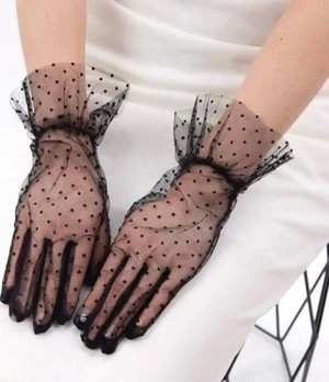 Kısa Güpürlü Siyah Puantiyeli Tül Eldiven