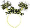 Parti Happy Birthday Püsküllü Neon Sarı Renk Doğum Günü Tacı 22x19 cm