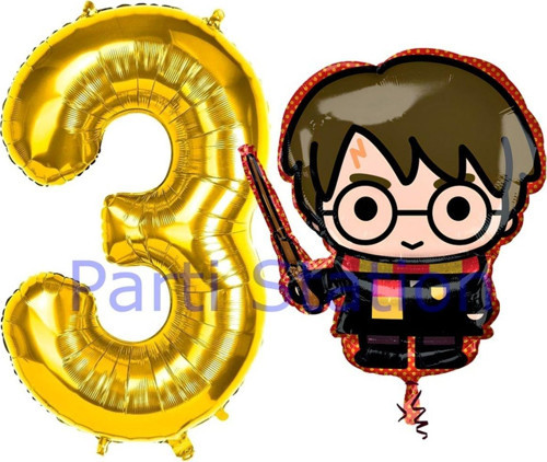 Parti Station Harry Potter 3 Yaş Altın Renk Rakam Balon Set Harry Potter Hogwarts Konsept Doğum Günü Balon Set