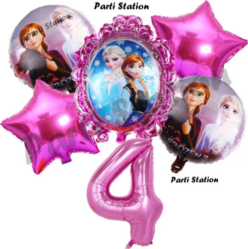 Parti Station Karlar Ülkesi Frozen Elsa 4 Yaş Doğum Günü Konsept Balon Set Frozen Elsa Pembe Renk Doğum Günü Seti