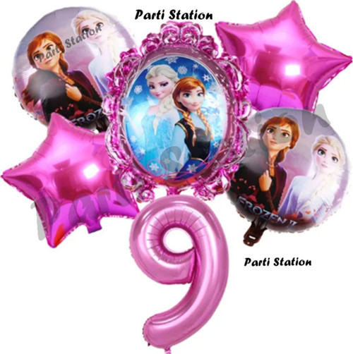 Parti Station Karlar Ülkesi Frozen Elsa 9 Yaş Doğum Günü Konsept Balon Set Frozen Elsa Pembe Renk Doğum Günü Seti
