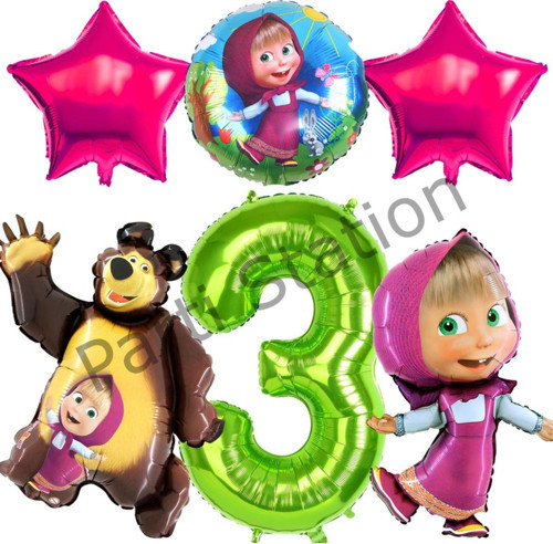 Parti Station Lisanslı Maşa Ve Koca Ayı Balon 3 Yaş Yrşil Renk Rakam Balon Set Masha And Bear Konsept Balon Set