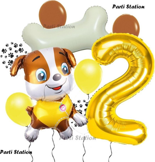 Parti Station Paw Patrol İş Araçları İnşaat İşçisi Köpek Rubble 2 Yaş Balon Set Pav Petrol Konsept Doğum Günü Set