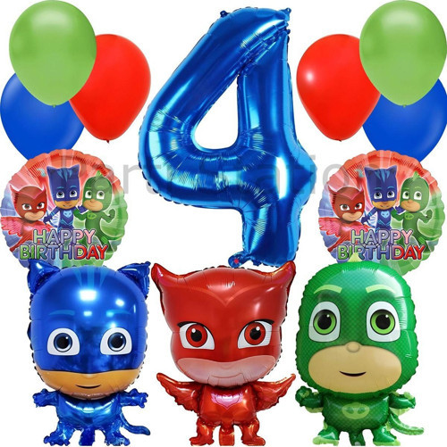 Parti Station Pijamaskeliler 4 Yaş Balon Seti Pjmasks Konsept Helyum Balon Set Pijamaskeli Doğum Günü Set