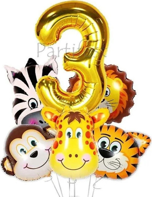 Parti Station Safari Hayvanlar 3 Yaş Balon Set Safari Büyük Kafa Balon Folyo Balon Set Konsept Doğum Günü Set