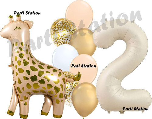 Parti Station Zürafa Balon Set Safari Zürafa 2 Yaş Balon Set Sevimli Zürafa Ve Krem Rakam Balon Doğum Günü Set