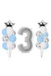 3 yaş gümüş folyo balon seti, çocukların özel günlerinde şenlikli bir atmosfer yaratmak için idealdir.