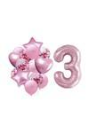 3 yaş çocuklar için özel olarak tasarlanmış, pembe renkli folyo balon seti, doğum günü partileri ve kutlamalar için ideal bir dekorasyon seçeneği sunar.