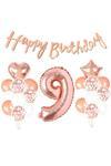 PAKET İÇERİSİNDE 22 ADET ÜRÜN BULUNMAKTADIR. ; 1 ADET 80 CM 9 RAKAM FOLYO BALON 1 ADET 45 CM YILDIZ ŞEKİLLİ FOLYO BALON 1 ADET 45 CM KALP FOLYO BALON 1 ADET HAPPY BİRTHDAY AFİŞ 6 ADET BEYAZ METALİK LATEX BALON 6 ADET ROSE GOLD KROM LATEX BALON 6 ADET ROSE GOLD KONFETİLİ ŞEFFAF BALON BULUNMAKTADIR HELYUM GAZI İLE ŞİŞİRİLMESİ DURUMUNDA UÇMA ÖZELLİĞİ KAZANIR. ; ŞİŞMEMİŞ HALDE GÖNDERİLECEKTİR. ; HELYUM GAZI OLMADAN EL POMPASI İLE ŞİŞİRİLEBİLİR ANCAK UÇAMAZ, UÇMAMAK KAYDI İLE AYNI FORMUNU ALIR.;