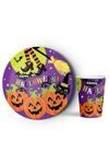 Cadılar Bayramı temalı tasarımıyla, korku ve ürperti sevenlerin beğenisine sunulan 8'li tabak ve bardak seti, özel günlerinizi unutulmaz kılacak.