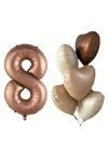 Parti Sürprizi'nin özel tasarımı olan bu çikolata karamel kalpli folyo balon seti, 8 yaş doğum günü kutlamalarınıza renk katmak için ideal bir seçimdir.