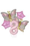 Parti Sürprizi Gold Kelebekli Pembe 8 Yaş Rakam Balon Set