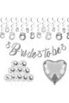 1 ADET GÜMÜŞ BRİDE TO BE YAZI (Ürün ölçümüz En:35 Boy:170 cm) 11 ADET YÜZÜK YAVAN SÜS (İçerisinde 2 adet: 20,5 cm 3 adet:15,5 cm 6 adet:10 cm) 2 ADET GÜMÜŞ KALP FOLYO BALON 45 CM 6 ADET İÇİ KONFETİLİ GÜMÜŞ LATEX BALON 30 CM