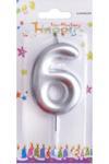 Gümüş Renk 6 Rakam Mum 1 Adet