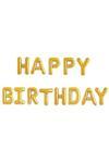 Harfli tasarım: "Happy" ve "Birthday" kelimelerinin altın harfleri ile süslenmiş bu balonlar, kutlamanızın mesajını görsel olarak vurgular.