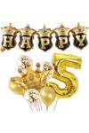 Parti Sürprizi Happy Yazılı Gold Konfetili 5 Yaş Rakam Balon Set