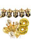 Parti Sürprizi Happy Yazılı Gold Konfetili 8 Yaş Rakam Balon Set