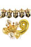 Parti Sürprizi Happy Yazılı Gold Konfetili 9 Yaş Rakam Balon Set