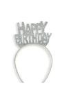 Parti Sürprizi Kadın Simli Gümüş Happy Birthday Taç 1 Adet