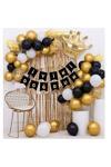 1 Adet Kral Tacı Folyo Balon Gold 10 İnç (20 cm) : 1 Adet İyi ki doğdun varaklı Banner Siyah - Gold Gold Arka Fon Perdesi 90cm x 200cm ( İki tarafı boyalıdır ) ; 20 Gold Metalik Balon ; 10 Pastel Mat Siyah Balon ; 5 Pastel Mat Beyaz Balon ; 5 Gold Konfetili Şeffaf Balon ; 5 mt Balon Zinciri Bulunmaktadır. ;