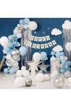 Doğum günü kutlamalarınızda renkli ve şık bir atmosfer yaratmak için ideal olan mavi, gri ve beyaz renklerdeki balon seti, her türlü etkinlikte göz alıcı bir dekorasyon sağlar.