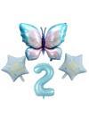 Parti Sürprizi Mavi Kelebekli Happy Birthday 2 Yaş Folyo Balon Set