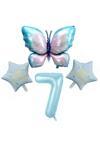 Parti Sürprizi Mavi Kelebekli Happy Birthday 7 Yaş Folyo Balon Set