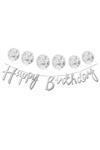 Paket İçerisinde 1 Set ''Kaligrafi Banner Gümüş Happy Birthday'' Bulunmaktadır. ; 6 Adet Konfetili Şeffaf Balon 12 inç (30 cm ) Ürün Ölçümüz ''En:25 cm-Boy:135 cm'dir.'' 1.sınıf kağıda Baskıdır. ; İçerisinde Bulunan İp Yardımı İle İstenilen Yere Asabilirsiniz;