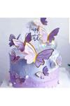 Parti Sürprizi Mor Gold Varaklı Kelebek Pasta Dekor Süs 42 Adet