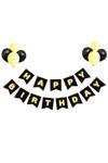 Çocukların özel günlerini kutlamak için ideal bir seçim olan siyah üzeri gold baskılı happy birthday balon seti, hem şık hem de eğlenceli bir atmosfer yaratır.