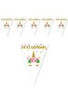 Paket içerisinde 10 adet bayraktan oluşan 1 set üçgen flama vardır.; Toplam uzunluk 2 metre yükseklik 24 cm dir.; 1.sınıf kuşe kağıttan imal edilmiştir.; Doğum günü ve özel günlerinizde istenilen yerlere ipleri sayesinde asılarak süslemelerini daha şık hale getirebilirsiniz.;