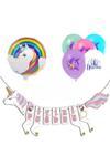 Çocukların doğum günlerini özel kılmak için ideal bir seçim olan bu set, sevimli unicorn şekilli balonlarla süslenmiş; Her yaştan çocuğun keyifle kullanabileceği, eğlenceli ve renkli bir doğum günü dekorasyonu sunar; Balonların üzerinde bulunan "iyi ki doğdun" yazılı mesaj, kutlama mesajını çocukların yüzlerine taşıyarak unutulmaz bir anı yaratır; Set içerisinde yer alan balonlar, kolayca şişirilebilir ve farklı boyutlarda olduğundan dekorasyonunuzu kişiselleştirmenize olanak tanır;