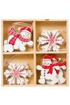 Paket İçerisinde ahşap malzemeden üretilmiş 8 Adet ürün bulunmaktadır 4 adet kartanesi 4 adet kardan adam dekor süs bulunmaktadır.