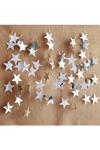 Paket içerisinde 30 adet 4 metre uzunluğunda boyutu 7 cm olan birbirine iple bağlı sarkıt gümüş renk yıldız süs vardır