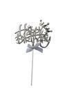 Parti Sürprizi Yıldızlı Gümüş Happy Birthday Fiyonklu Pasta Süsü