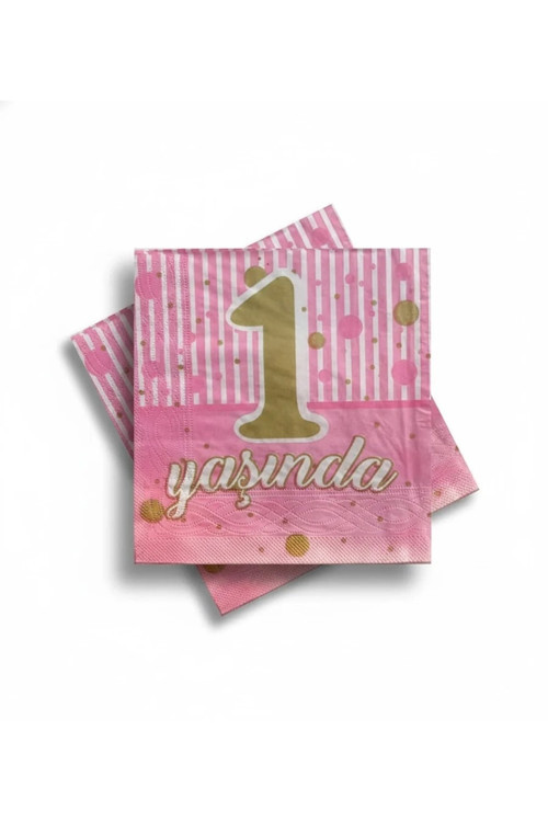 - 1 yaş doğum günü temasına uygun, özel tasarım baskı ile dikkat çeken peçeteler.