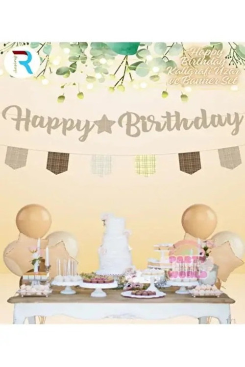 Partyy Bag Happy Birthday Yazılı Kaligrafi Banner Set