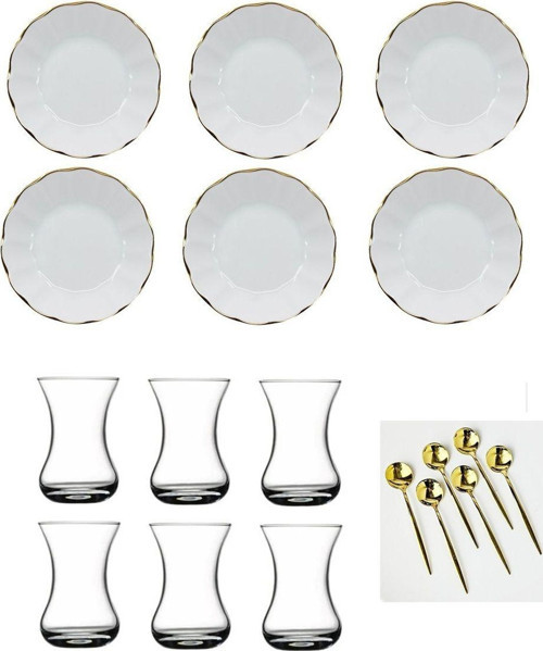 18 Parça Beyaz Altın Yaldızlı Acem Gold Kaşıklı Çay Takımı Seti