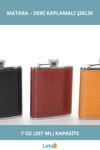 - Paket içeriği: 1 adet Paslanmaz Çelik Derili Matara (7 Oz).