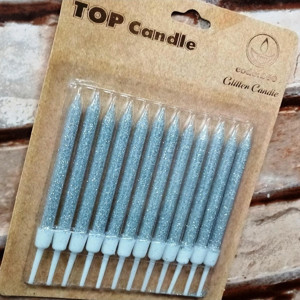 Silver Bırthday Candle 1.Kalite Parlak Metalik Simli Gümüş Pasta Mumu 12 Adet Gümüş Doğum Günü Mumu
