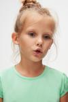 Pastel Yeşil Basic Kız Çocuk Sıfır Yaka Karpuz Kol Tişört - Image 1